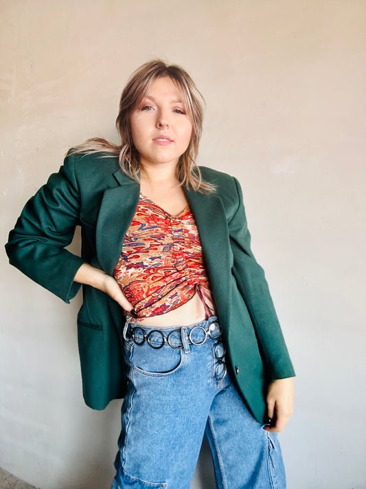 Top Halter Vintage con Stampa Paisley & Anello Gioiello – Anni 2000 Y2K Rodeo Style