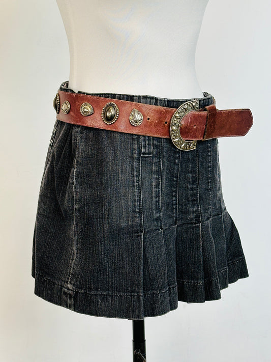 Cintura anni 2000 Vintage in Pelle Borchiata con Catena – Western Glam Revival