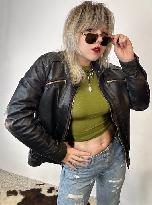 Giacca di Pelle Vintage Stile Biker - Anni ‘60/‘70