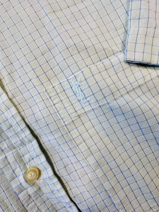 YVES SAINT LAURENT - Camicia panna a quadri con logo ricamato