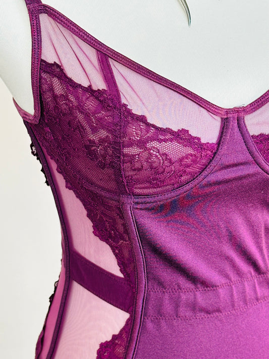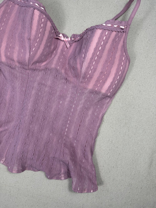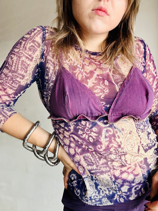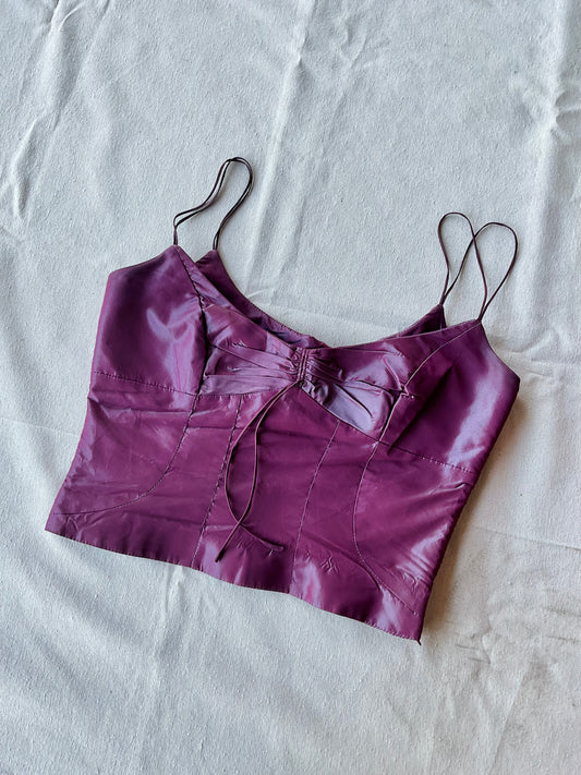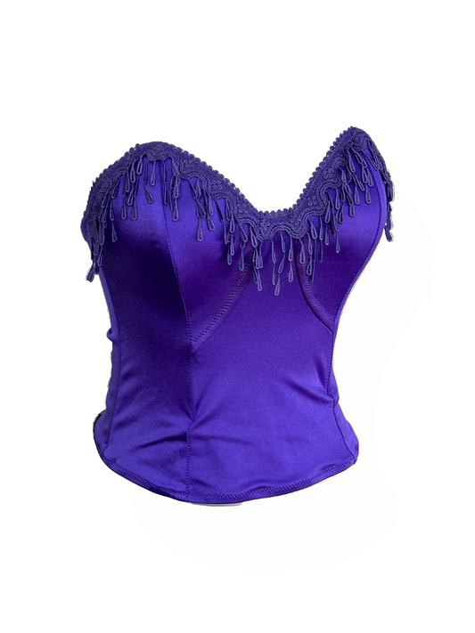 Top bustier vintage elasticizzato viola con ricami a goccia