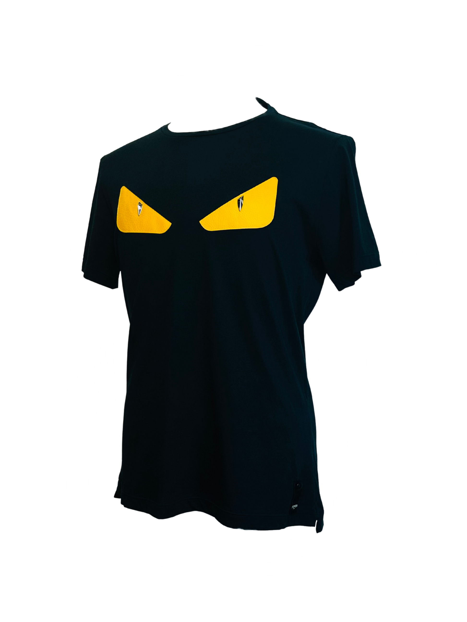 Una delle grafiche più riconoscibili e desiderate della maison Fendi: gli “occhi cattivi” Bag Bugs in rilievo effetto pelle saffiano gialla. Una t-shirt che non passa inosservata, perfetta per chi vuole un capo street-luxury autentico e collezionabile.