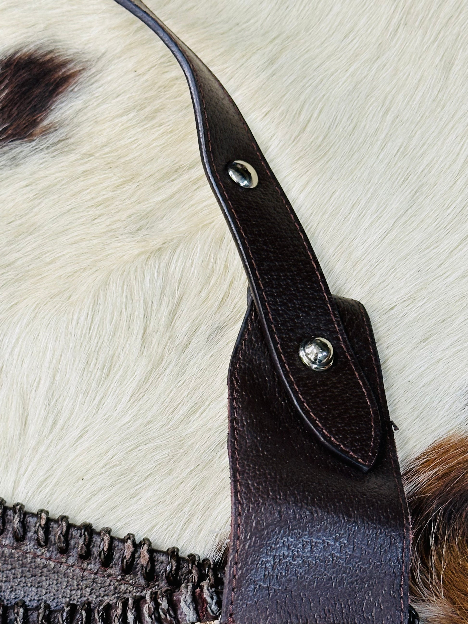 Perfetta da portare a spalla o a bandoliera grazie alla tracolla larga, questa borsa si abbina facilmente a look urban e vintage: