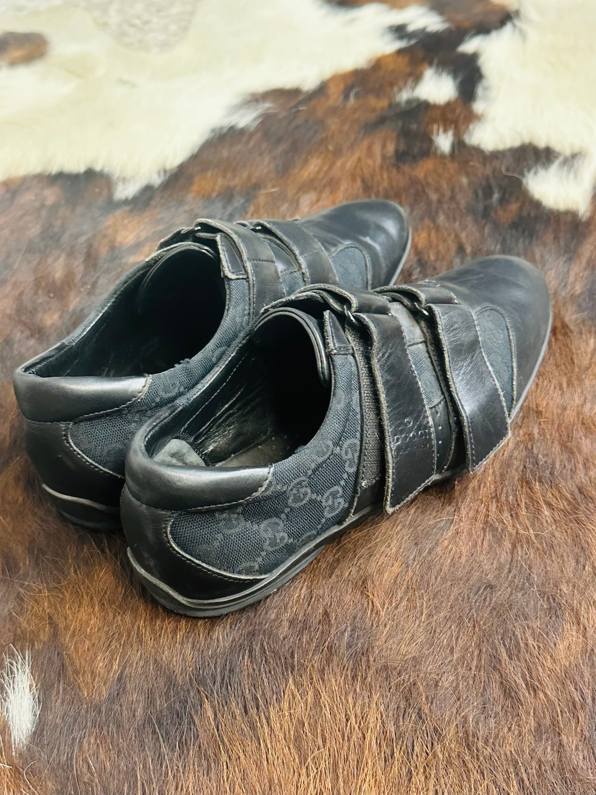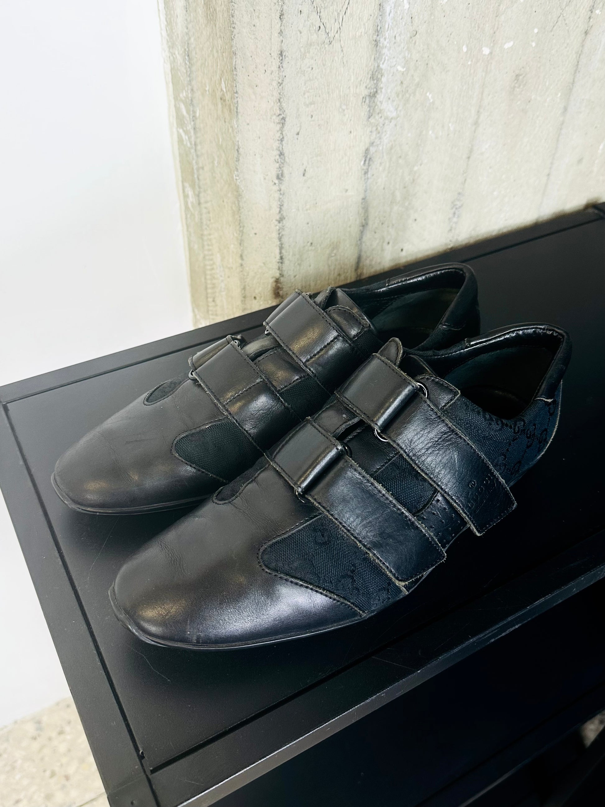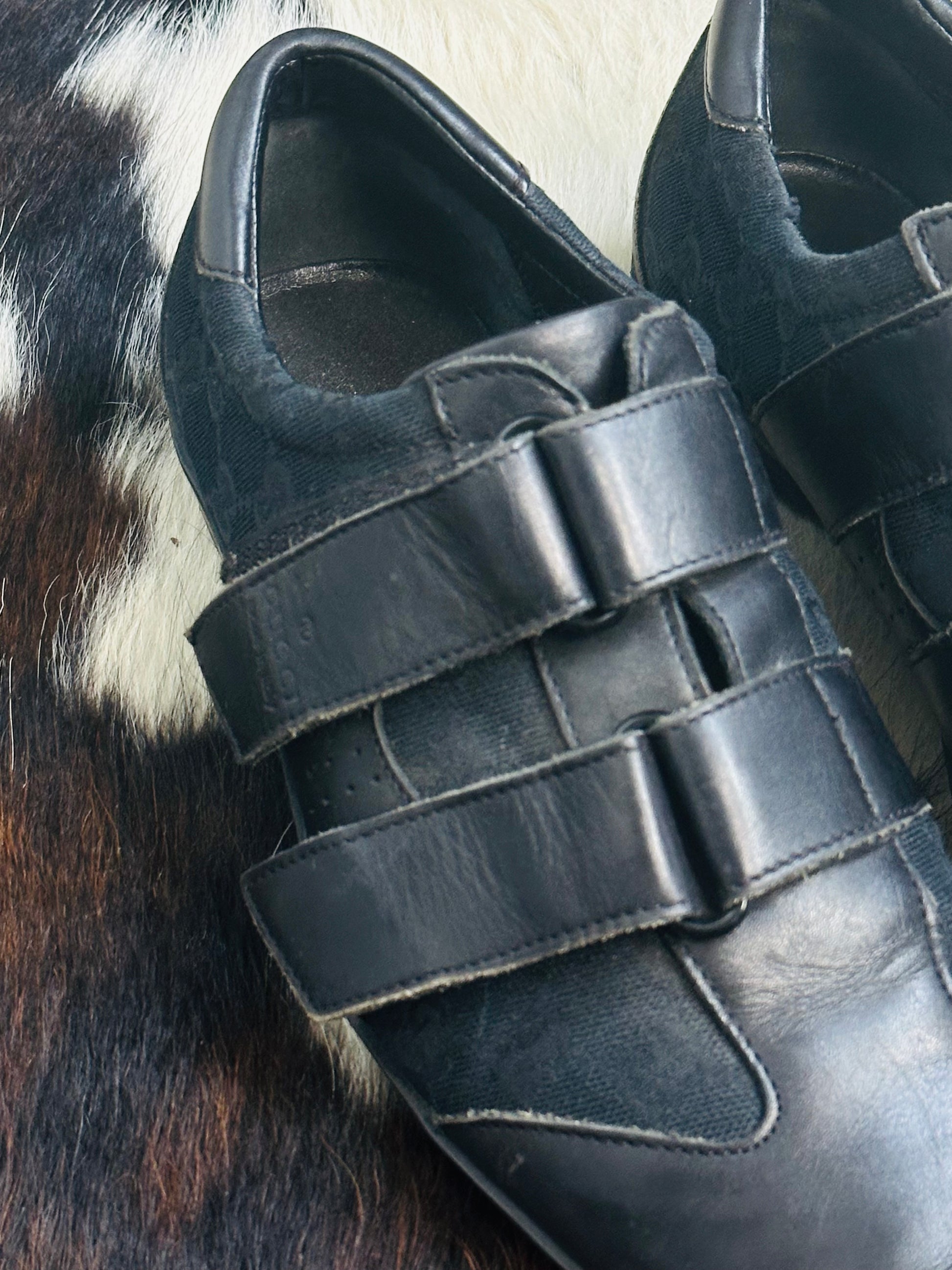 GUCCI - Sneakers Vintage con Doppio Strap – Pelle e Tela GG Monogram – Nero | Tg 40½