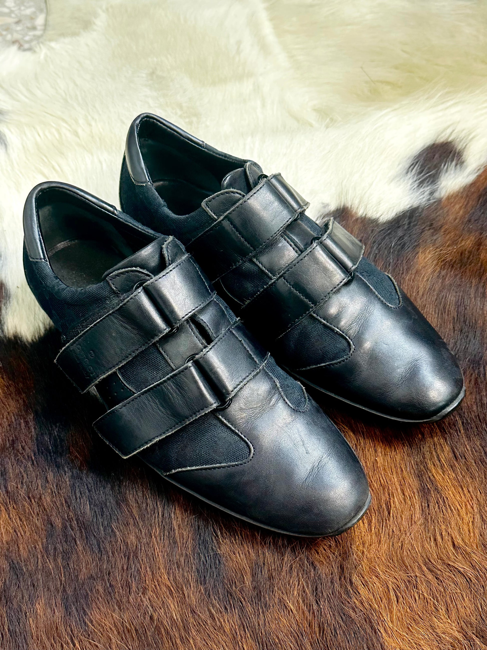 Un modello iconico della linea Gucci casual dei primi anni 2000, queste sneakers rappresentano il perfetto equilibrio tra lusso, comfort e design urban. Con la loro silhouette affusolata e la chiusura a doppio strap, sono un pezzo unico che unisce praticità e stile ricercato, oggi molto ricercato nel mercato vintage Y2K.