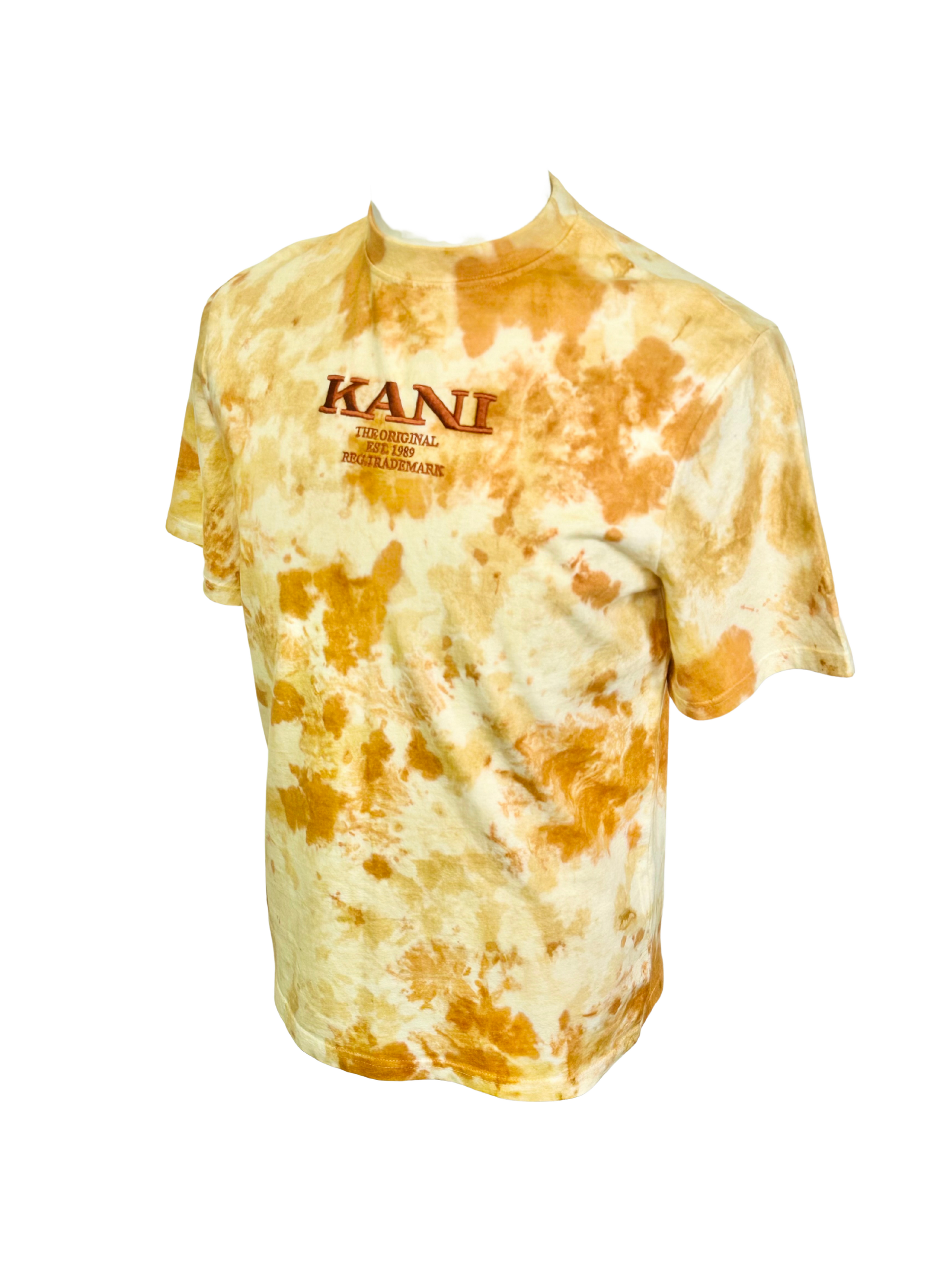 Scopri un pezzo autentico dell’estetica streetwear anni ’90 con questa iconica t-shirt KANI, proposta in una rara taglia XXS. Realizzata in morbido cotone, questa maglietta unisce comfort e stile con una vibrante fantasia tie-dye nei toni del giallo ocra e ruggine, per un effetto “sun-bleached” che evoca l’energia urbana dell’estate.