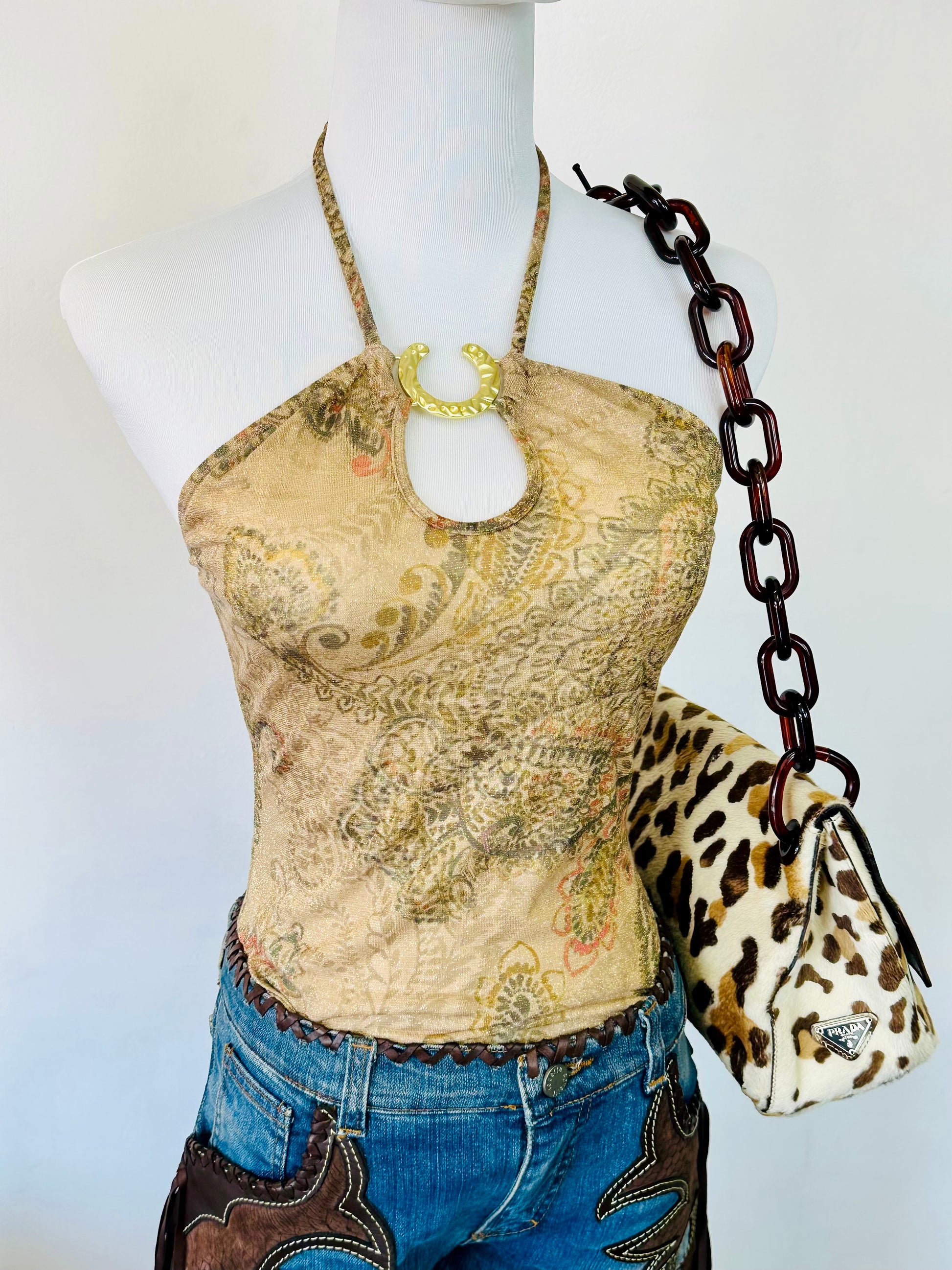 Top Halter Vintage con Stampa Paisley & Anello Gioiello – Anni 2000 Y2K Rodeo Style