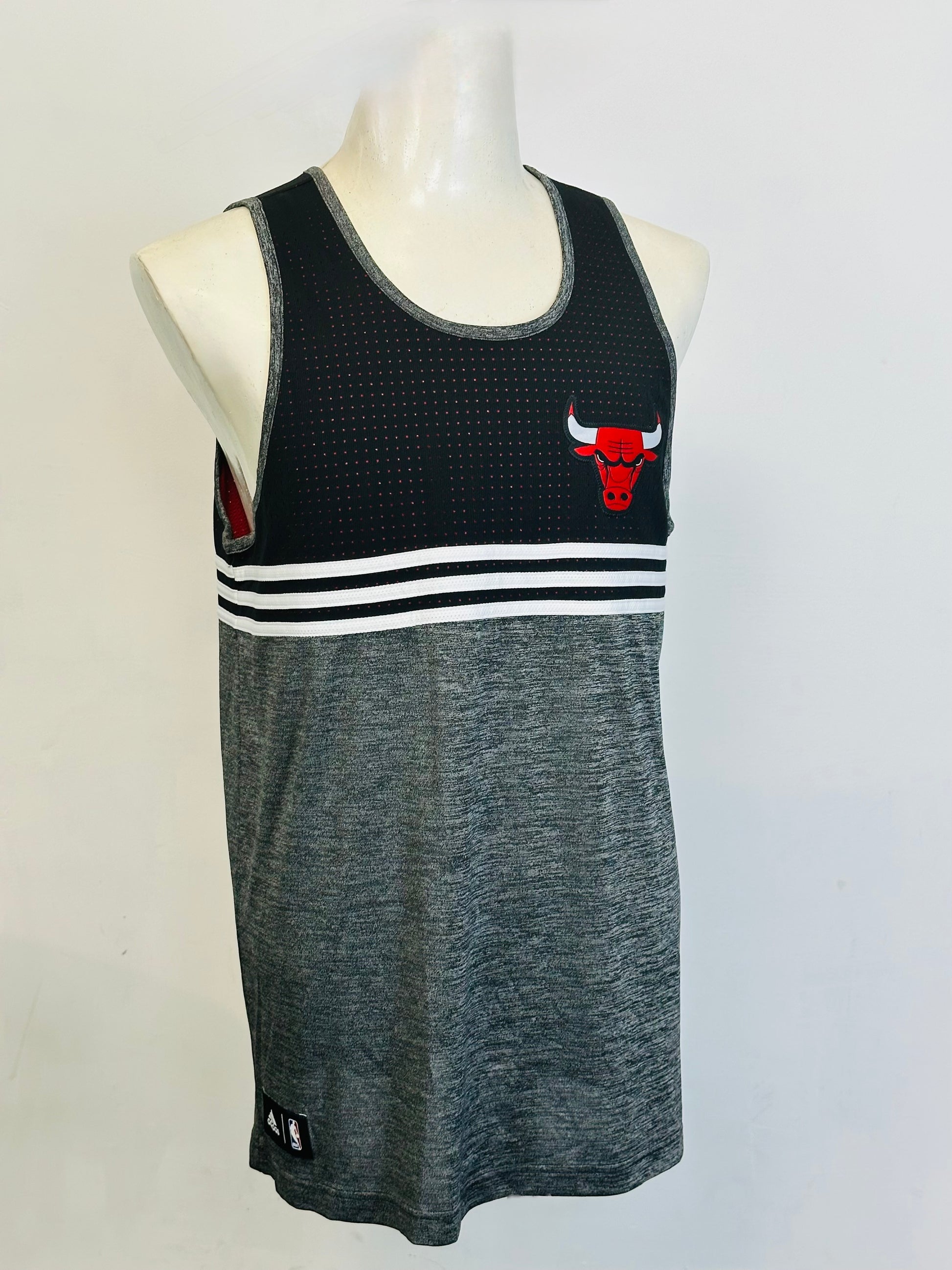 Un omaggio intramontabile a una delle squadre più leggendarie della NBA: i Chicago Bulls. Questa canotta firmata Adidas unisce comfort sportivo e design rétro, perfetta per chi vuole portare l’energia del parquet anche fuori dal campo. Il contrasto tra il nero traforato e il grigio mélange, unito ai dettagli bianco-rossi, la rende un capo versatile e grintoso.