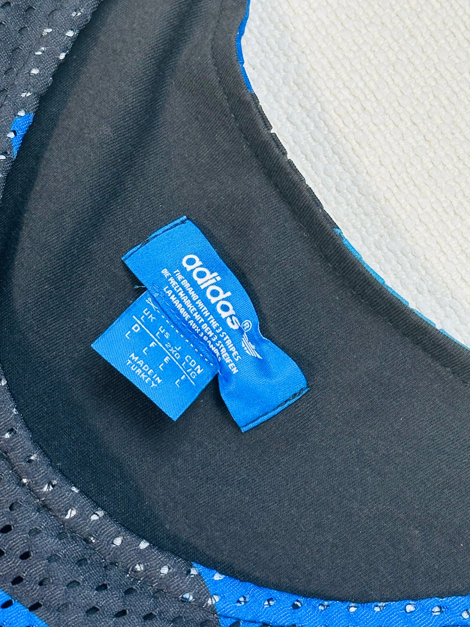 Un pezzo streetwear fuori dagli schemi che unisce sport, stile e collezionismo. Questa canotta ufficiale NBA in collaborazione con Adidas celebra i Miami Heat con una grafica camouflage blu elettrico e dettagli ad alto impatto visivo, ideale per chi vuole distinguersi con un capo unico.