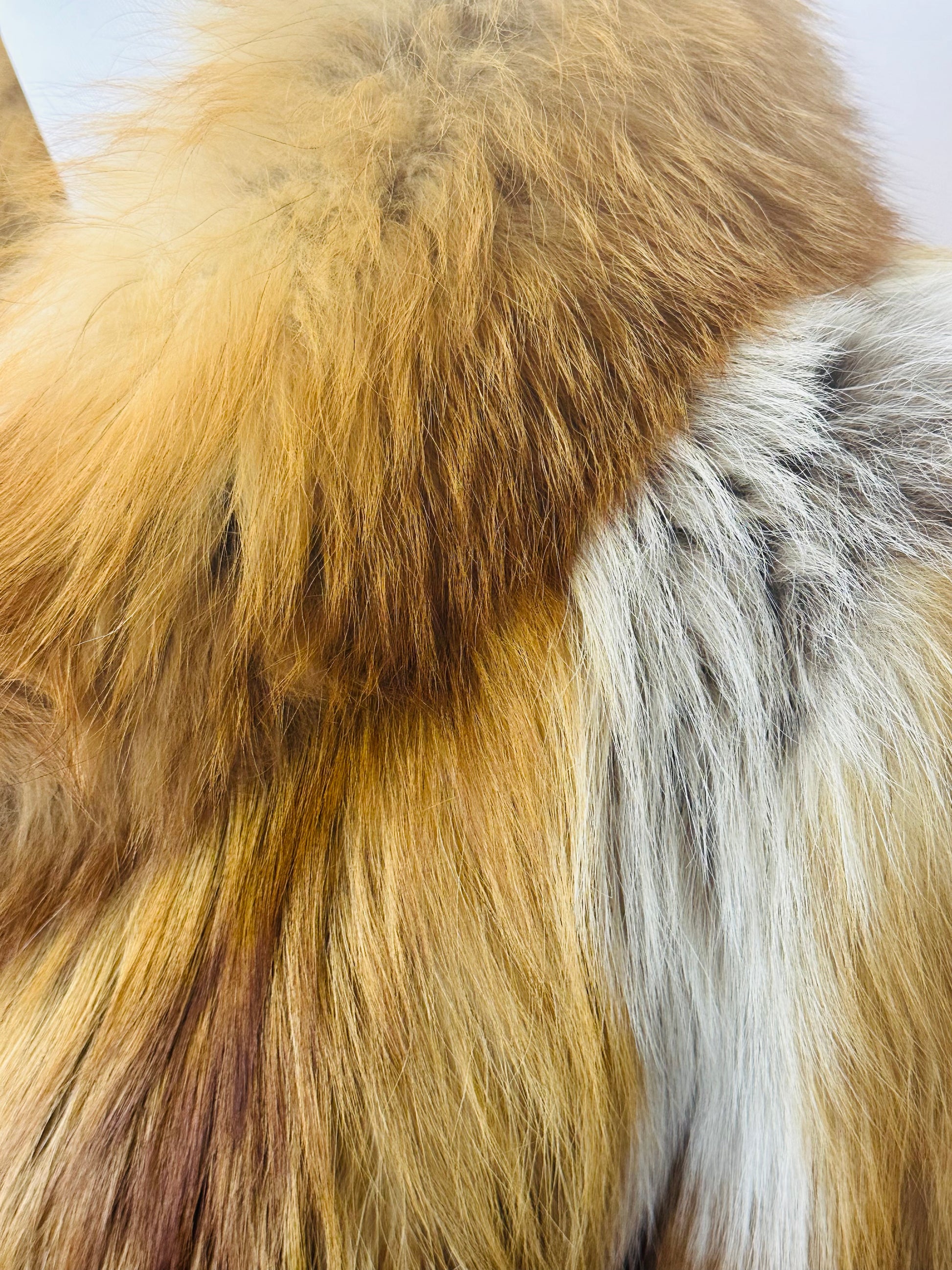 Questa straordinaria pelliccia in vera volpe rossa naturale è un autentico pezzo da collezione, una creazione iconica che unisce maestosità visiva, qualità superiore e lavorazione sartoriale d’eccellenza.