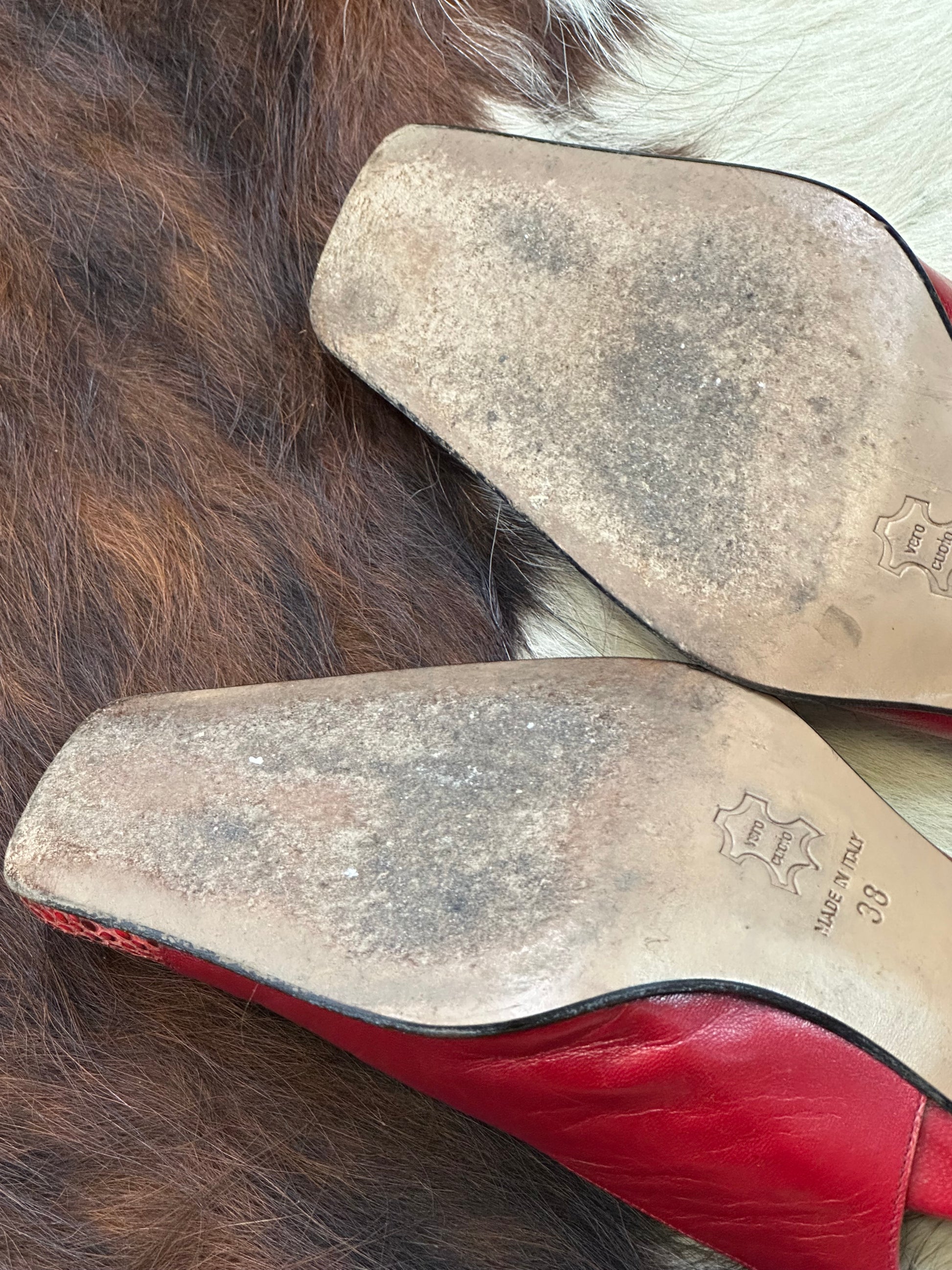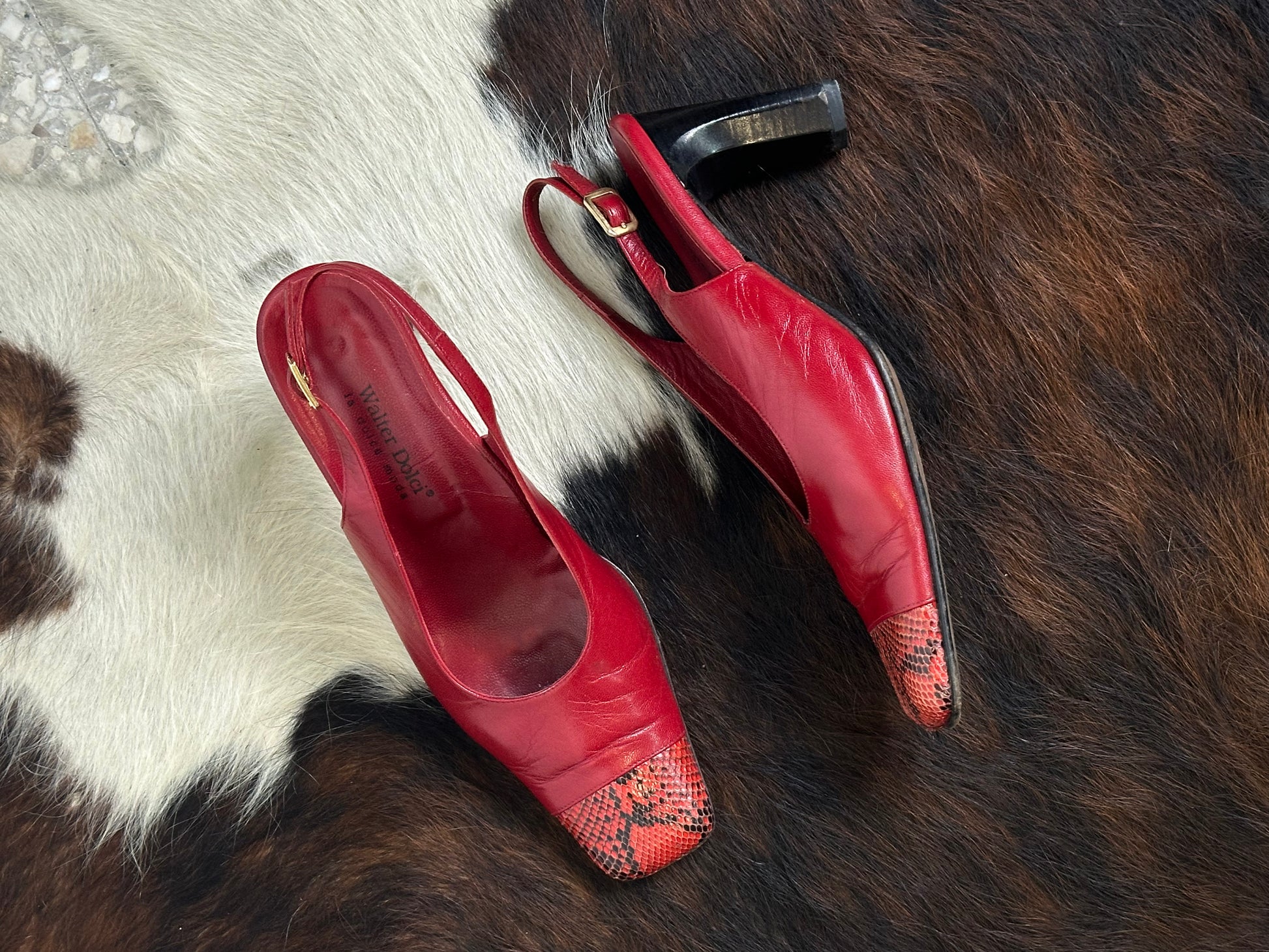 Scarpe Vintage – Slingback in Pelle Rossa con Punta in Pitone | Tg 38