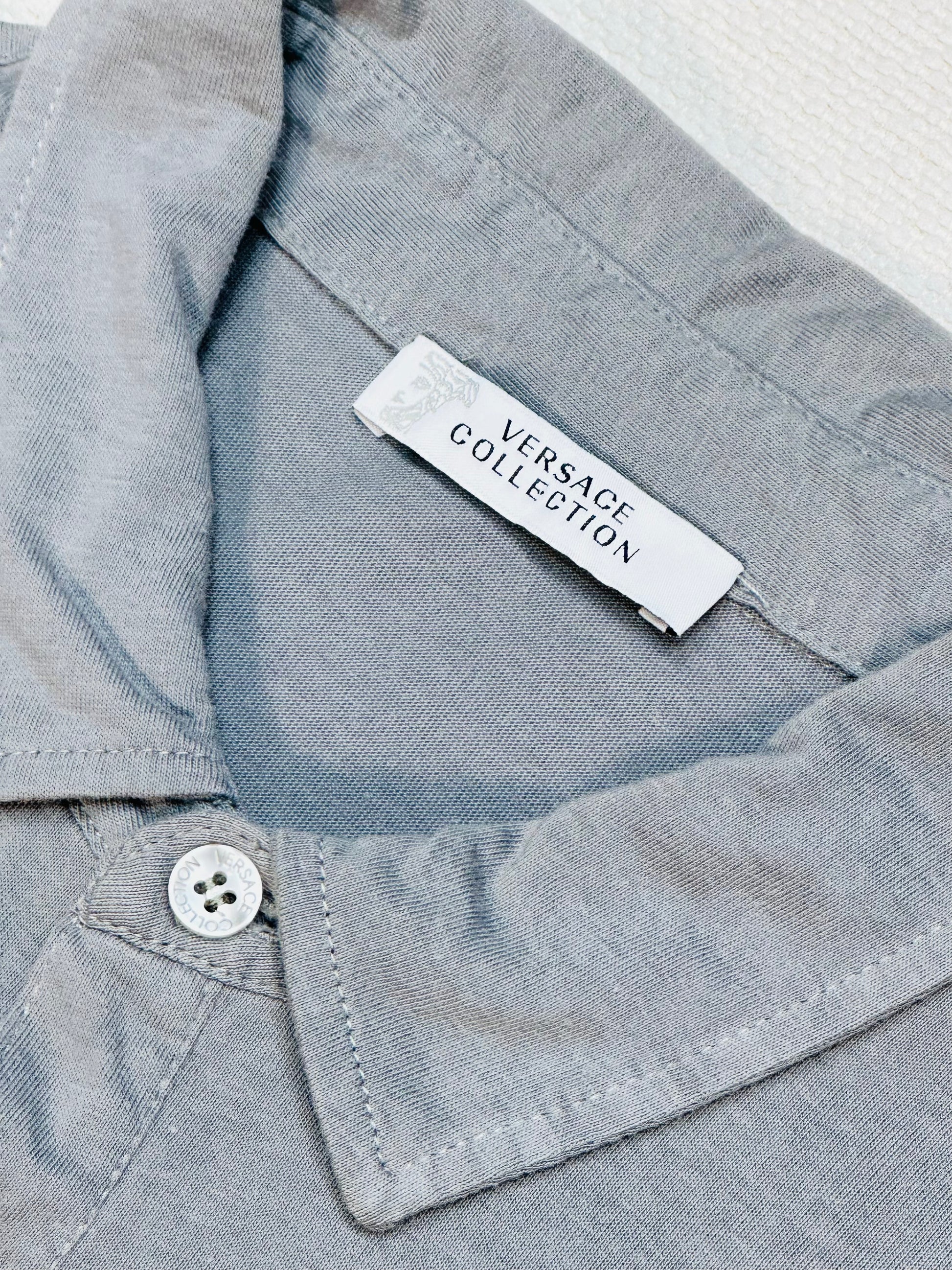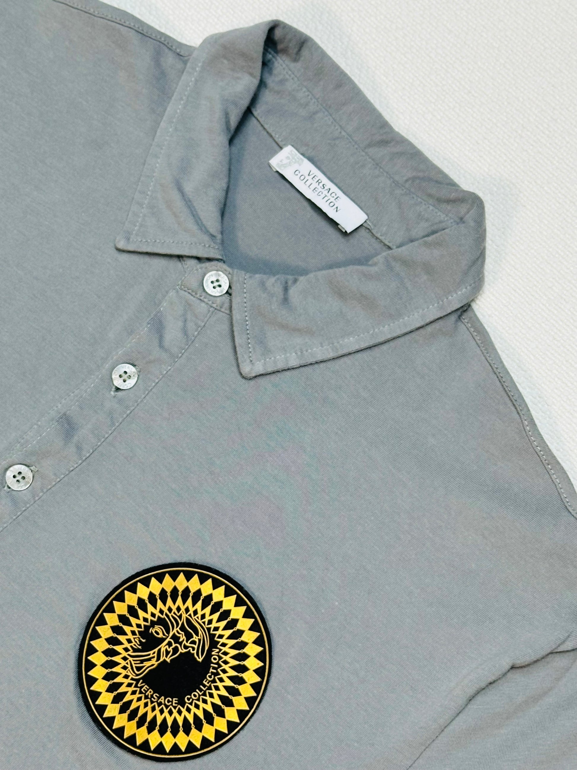 VERSACE COLLECTION – Polo color grigio con Patch dorato di Medusa stilizzata | XXL